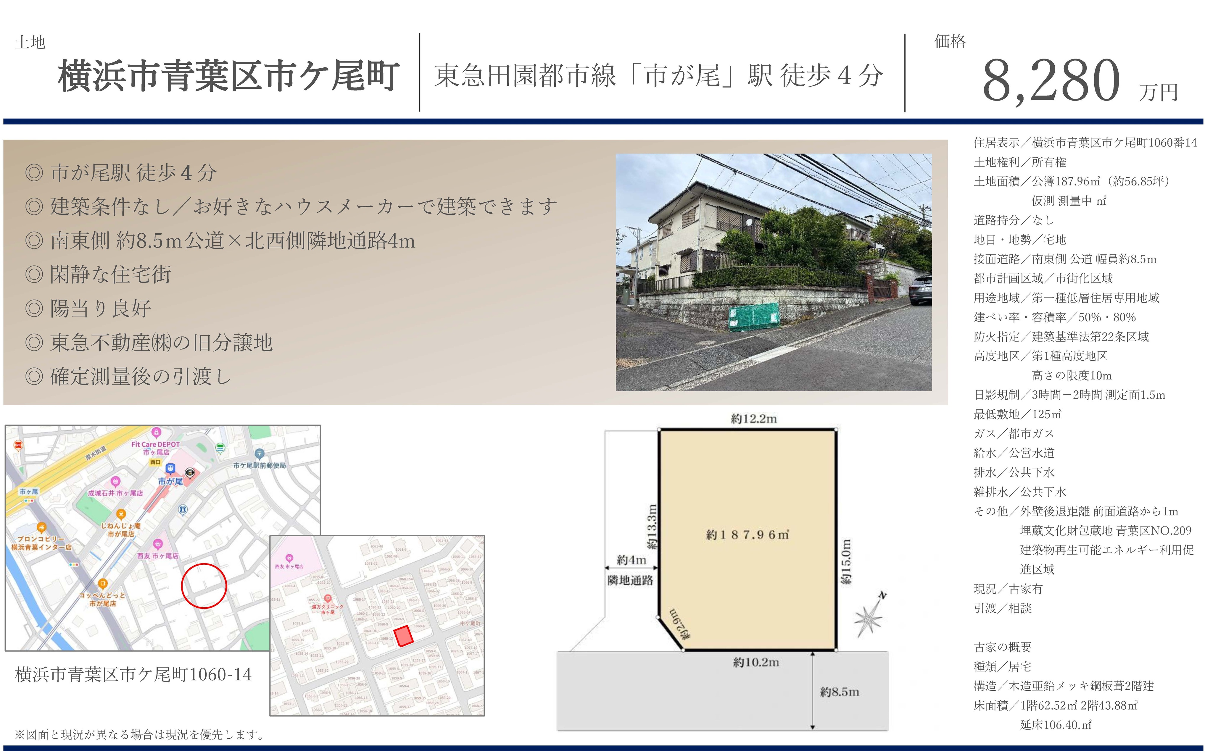 【売地】横浜市青葉区市ケ尾町 8,280万円-